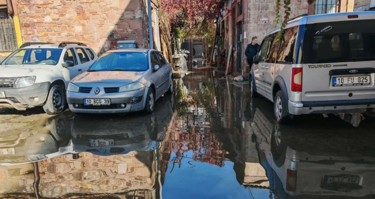 Murateli köyü girişindeki yol, su baskını nedeniyle ulaşıma kapandı. Meteoroloji’den alınan bilgiye göre, Ayvalık’ta son 24 saatte metrekareye 120 kilogram yağış düştü.