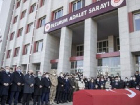 Kovid-19’a yenik düşen Mahkeme Başkanı’na Erzurum Adliyesinde hüzünlü veda