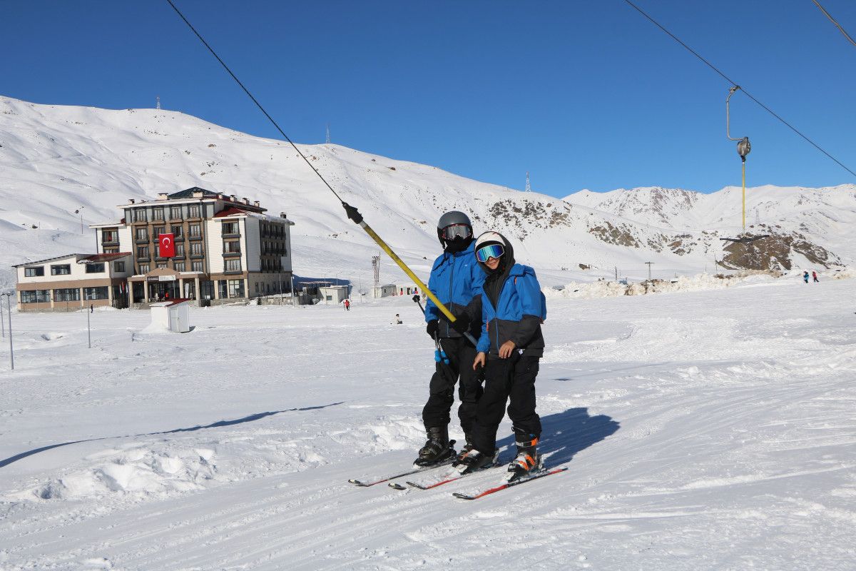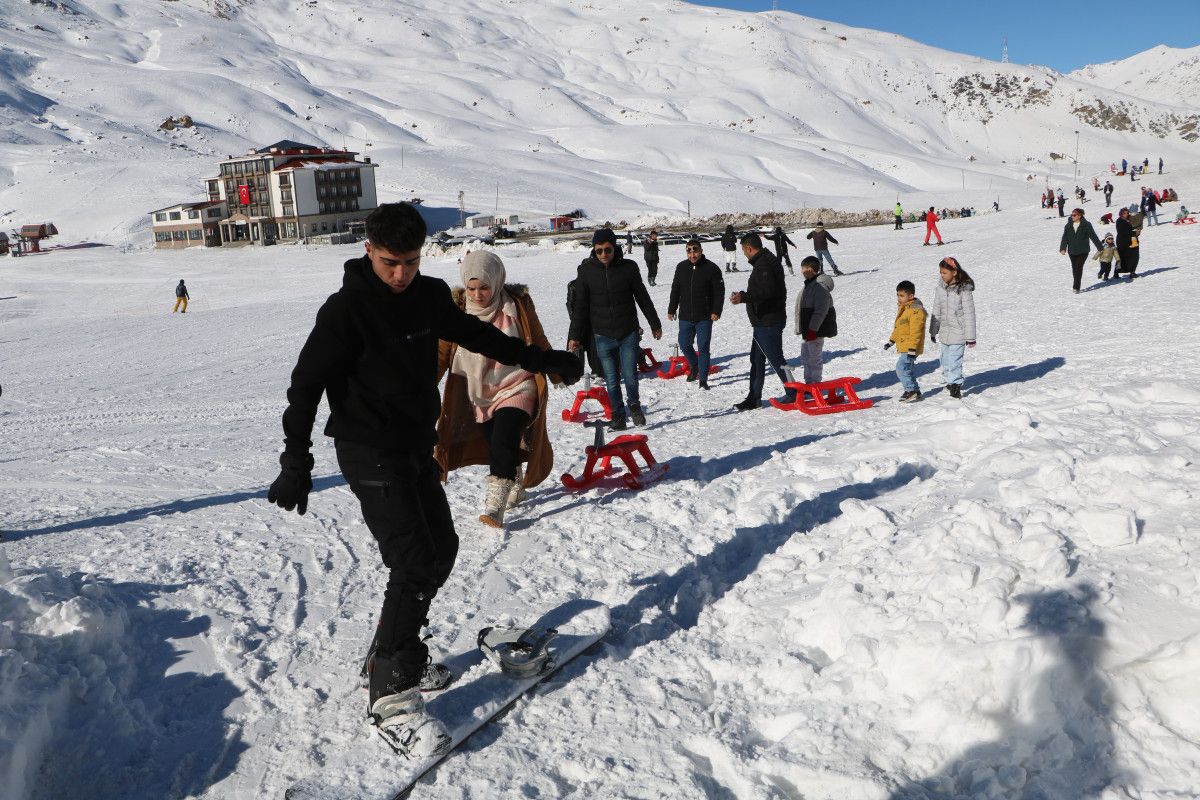 Uzun yıllar süren mücadelenin ardından terörün sona erdirildiği Hakkari’de kış turizminin önemli adreslerinden Mergabütan Kayak Merkezi’nde sezon açılırken vatandaşlar karın keyfini çıkardı.